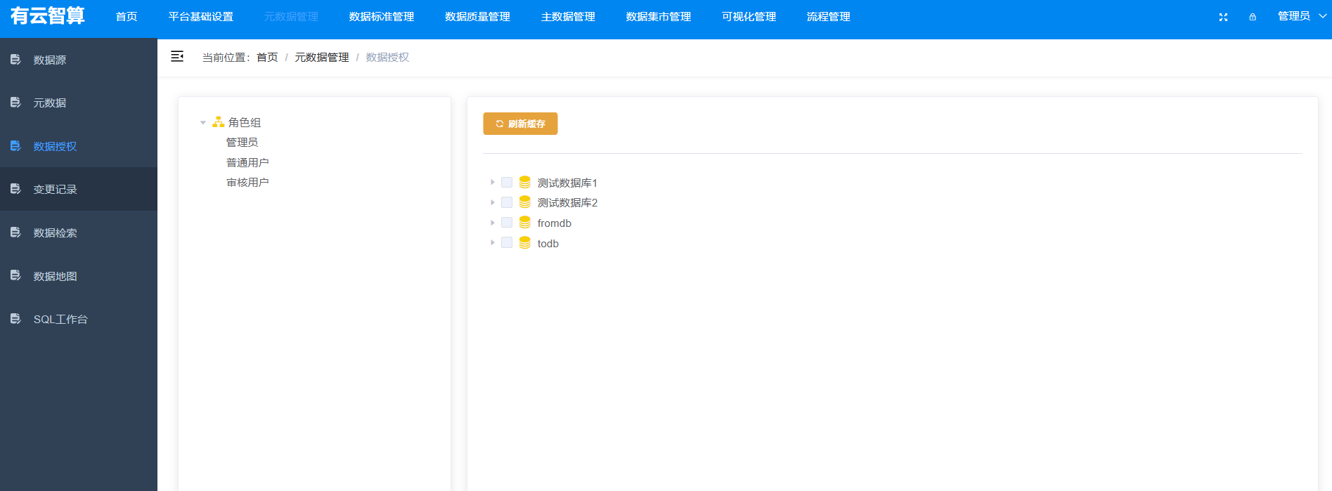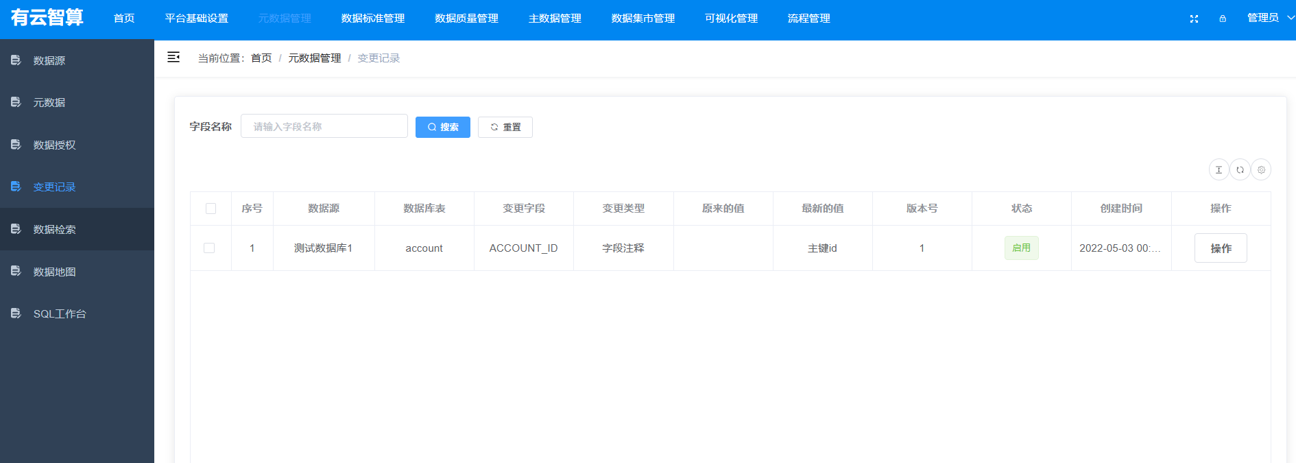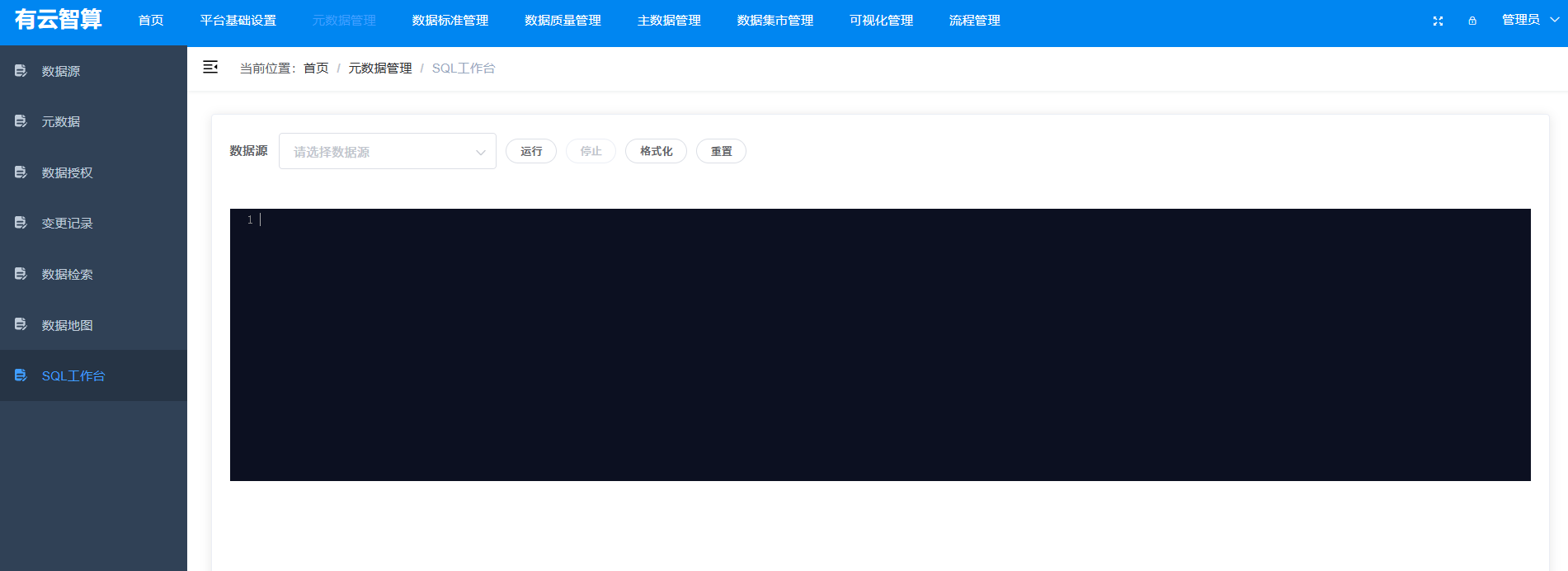 元数据管理:元数据(数据库、表、字段)的查看、数据授权、变更记录追踪、数据检索、数据地图、SQL 工作台等;