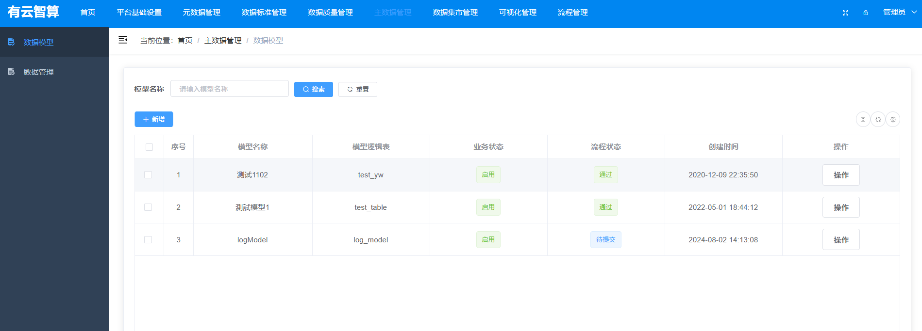 数据质量管理/主数据管理/数据集市管理:(界面体现为功能入口)数据质量校验、主数据统一管理、数据集市构建等;