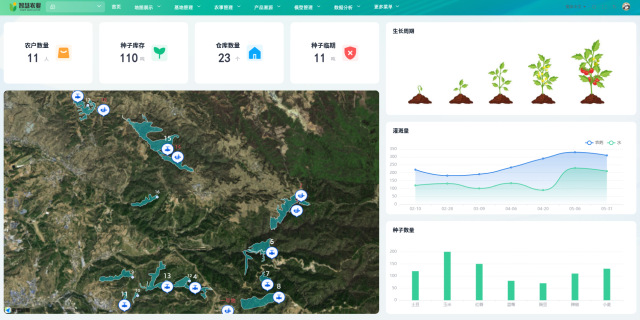 平台实现农户、仓库、种子库存等多维信息集中管理,通过地图、统计与趋势分析,协助企业动态掌握生产资源分布与种植进展。