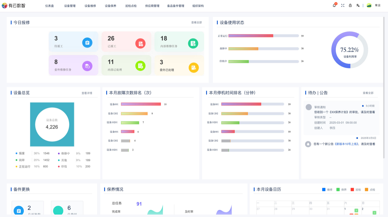 TPM 设备管理系统,即全面生产维护(Total Productive Maintenance)设备管理系统,是一种以提高设备综合效率为目标,全员参与的设备管理理念和方法体系,常借助信息化手段落地实施,从而提升企业设备管理水平和竞争力。