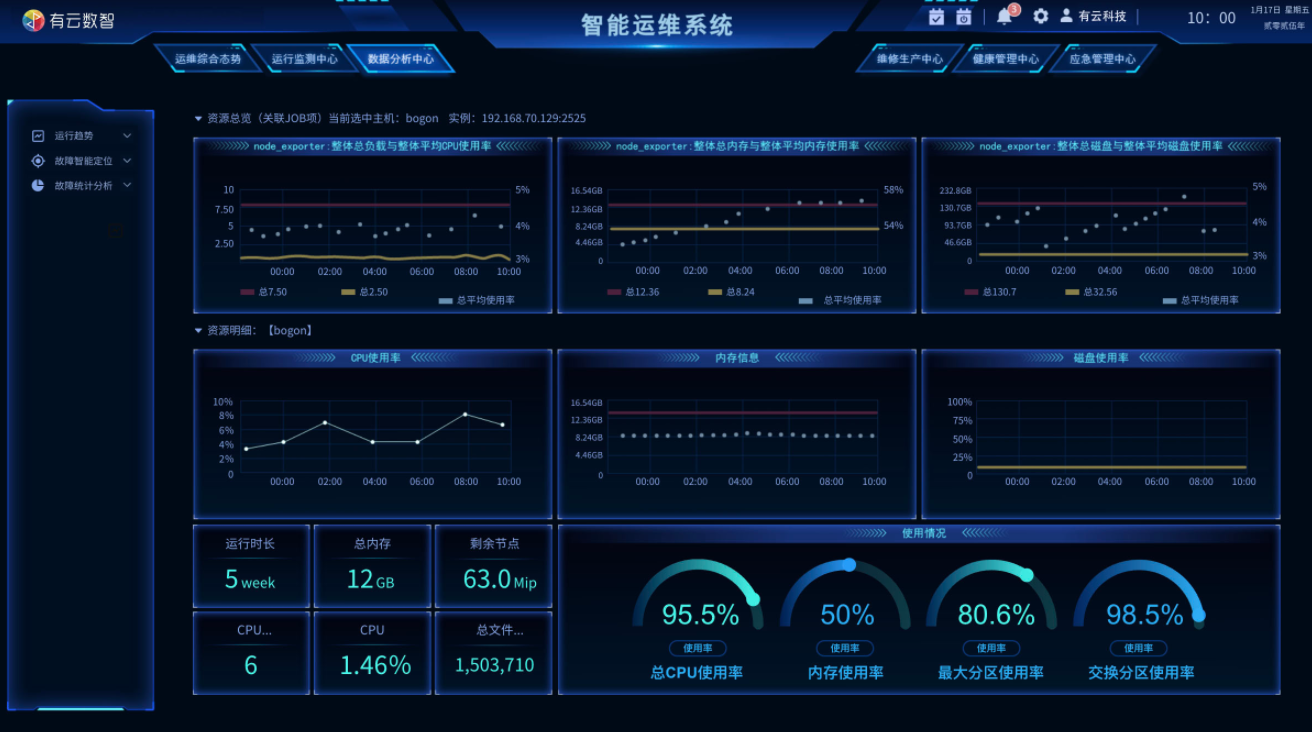实时监控:提供对 IT 基础设施和应用系统的 7×24 小时实时监控,涵盖硬件设备状态、软件性能指标、网络连接情况等多个维度。通过可视化的监控界面,运维人员可以直观地查看系统运行状态。