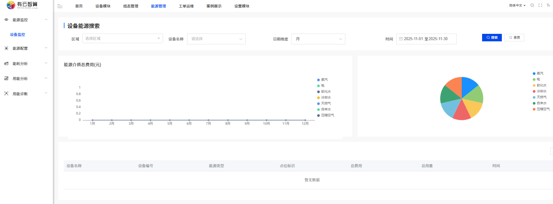提供能源消耗的分时统计、区域用能占比分析,辅助能源消耗诊断与优化。