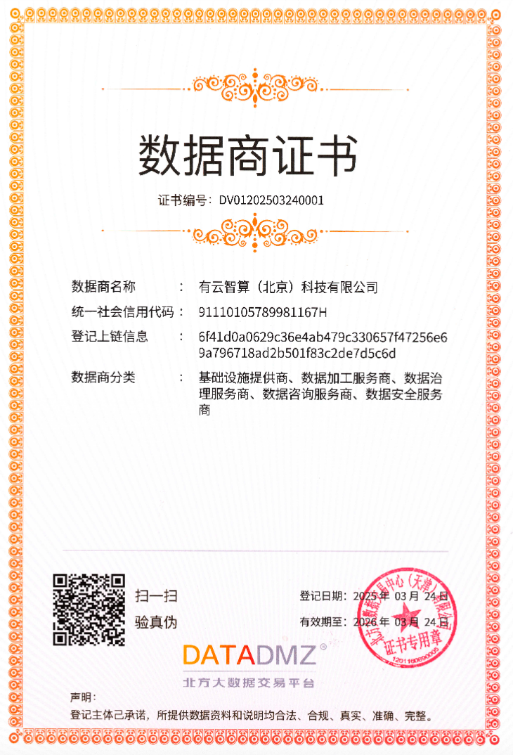 北方大数据交易中心自成立以来,已汇聚超750家数据商、上架1800余款数据产品,交易额突破10亿元,成为全国数据要素市场的重要枢纽。此次有云智算的加入,不仅为北方大数据交易中心注入了农业领域的高质量数据供给,也为农业产业链的数字化协同提供了更具体系化的算力支撑与数据服务能力。