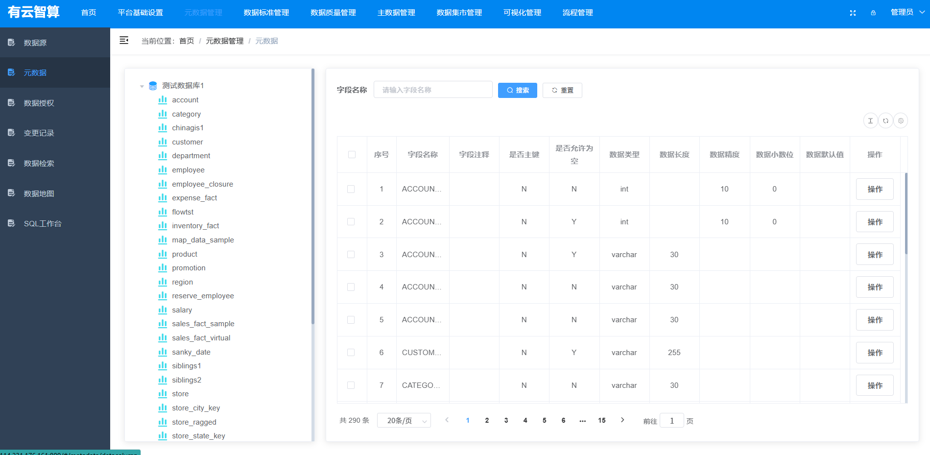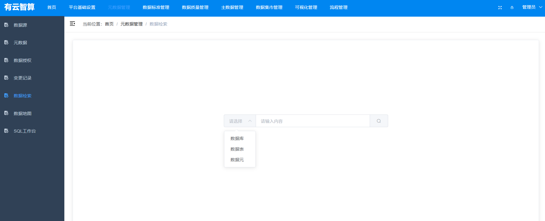 元数据管理:元数据(数据库、表、字段)的查看、数据授权、变更记录追踪、数据检索、数据地图、SQL 工作台等;