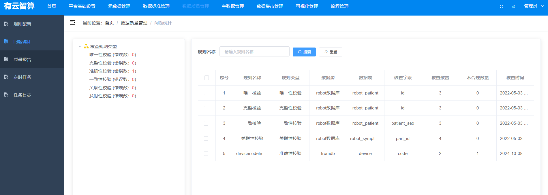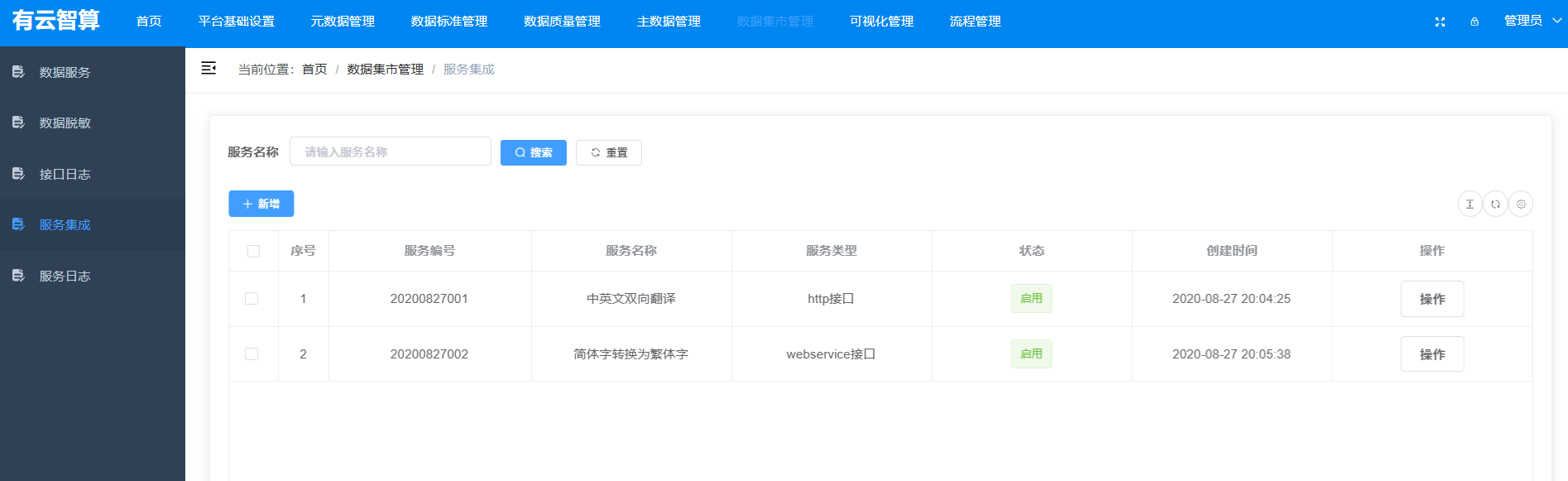 数据质量管理/主数据管理/数据集市管理:(界面体现为功能入口)数据质量校验、主数据统一管理、数据集市构建等;