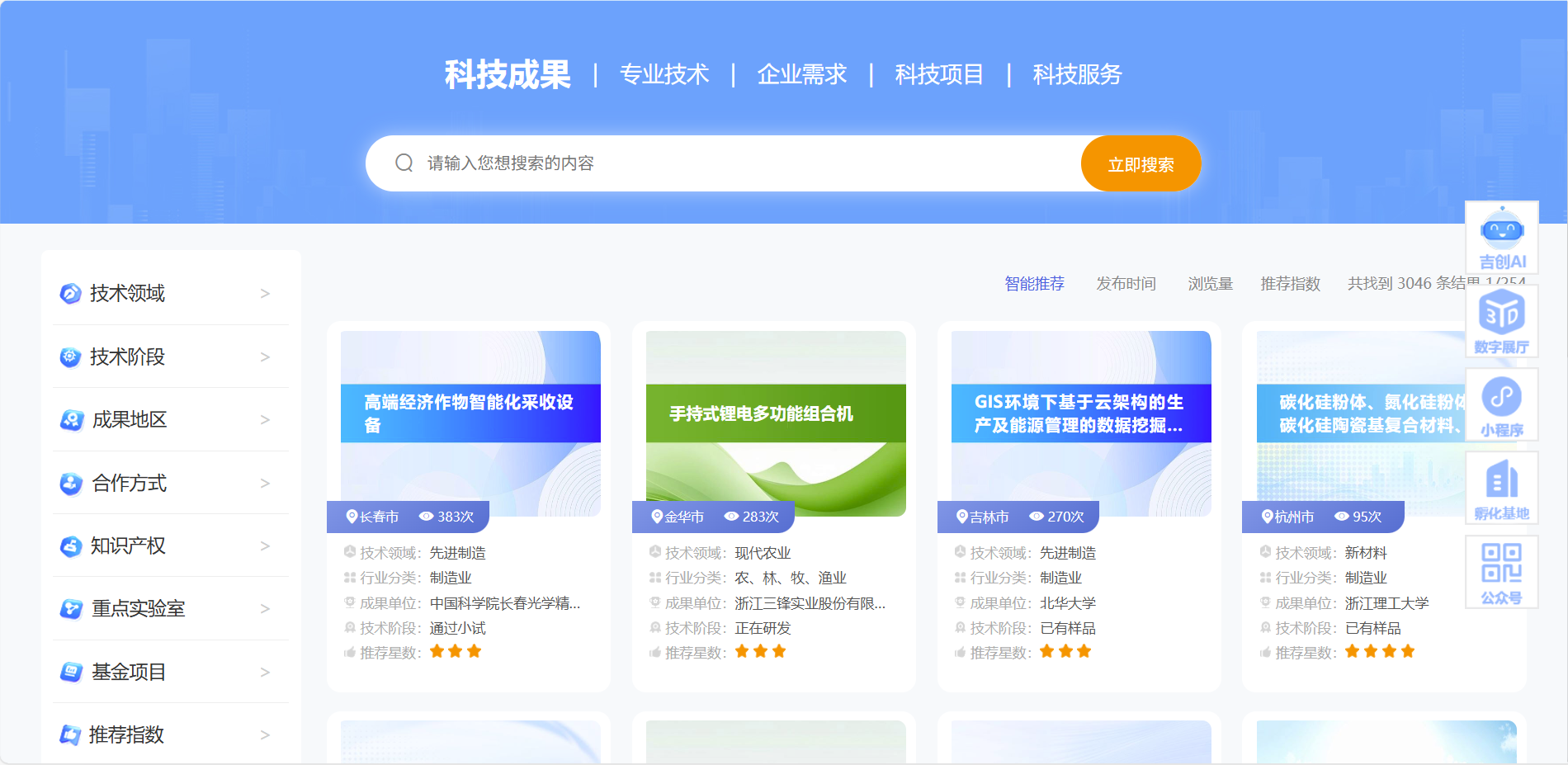 科技成果服务平台是服务科技创新生态环境建设的关键支撑,立足于科技成果转化、产业技术创新、科技研发的实际需求,确立了“聚集科技创新资源、提高成果转化效率、洞察产业技术创新、支撑研发公共服务”的核心目标。