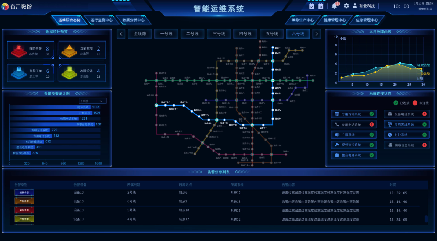 实时监控:提供对 IT 基础设施和应用系统的 7×24 小时实时监控,涵盖硬件设备状态、软件性能指标、网络连接情况等多个维度。通过可视化的监控界面,运维人员可以直观地查看系统运行状态。