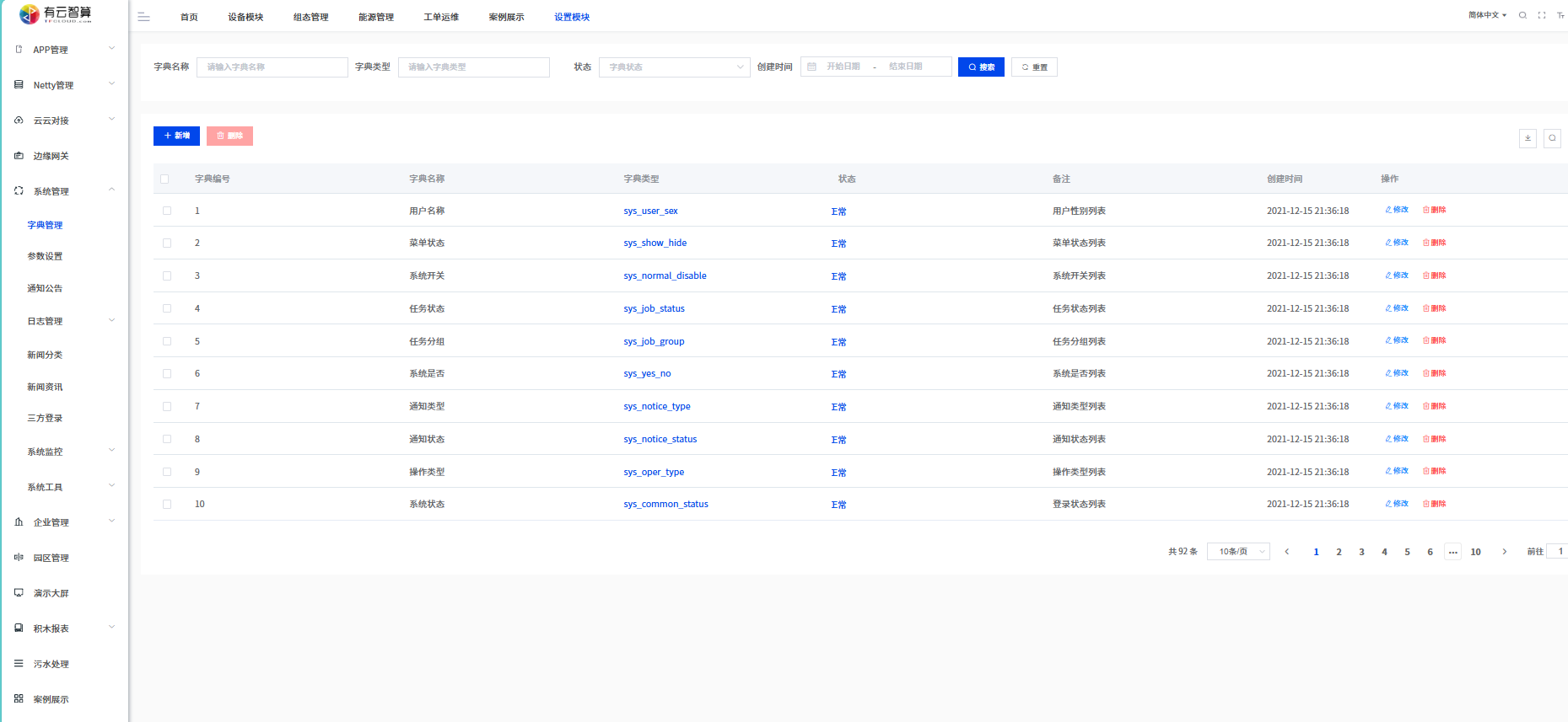 包含系统管理、企业管理、园区管理等基础配置功能;