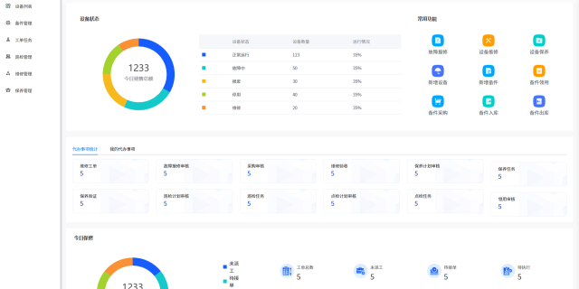 工单管理模块可直观统计设备状态,实现故障报修、维保维修、备件管理等全流程运维。
