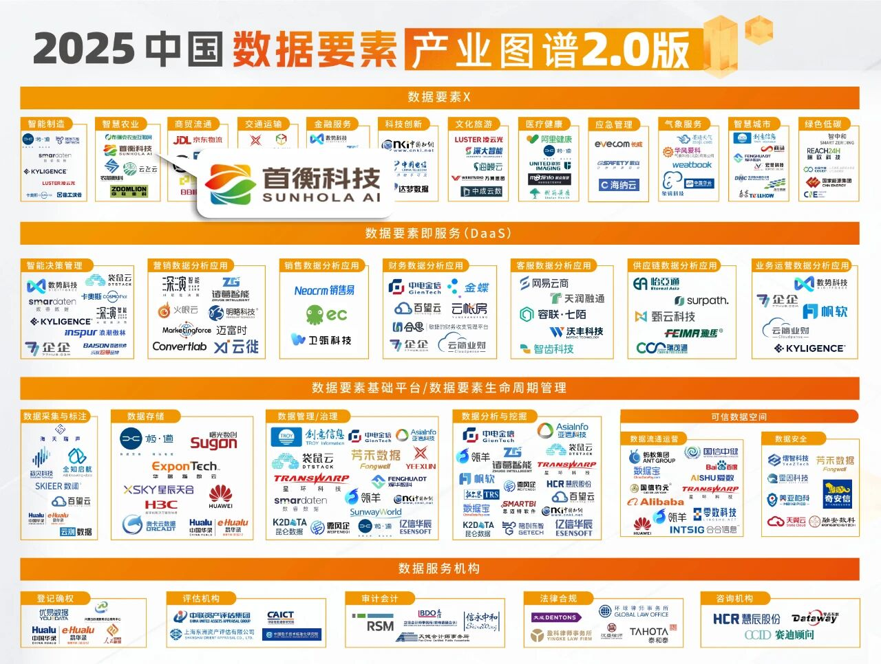 近日,由数据猿与上海大数据联盟联合发布的《2025中国数据要素产业图谱》揭晓。在涵盖政务、金融、能源、制造、农业等多个核心领域的上百家创新企业中,首衡科技凭借在农业大数据和AI智能体应用方面的创新成果,成功入选“智慧农业”板块,成为五家上榜企业之一。